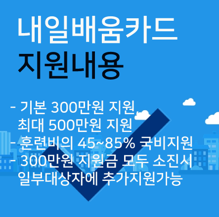 위에 해당하지 않는다면 누구나 신청하실 수 있는데요. 정부에서 훈련비를 지원받아 역량을 키우고 싶을때 활용해보세요.