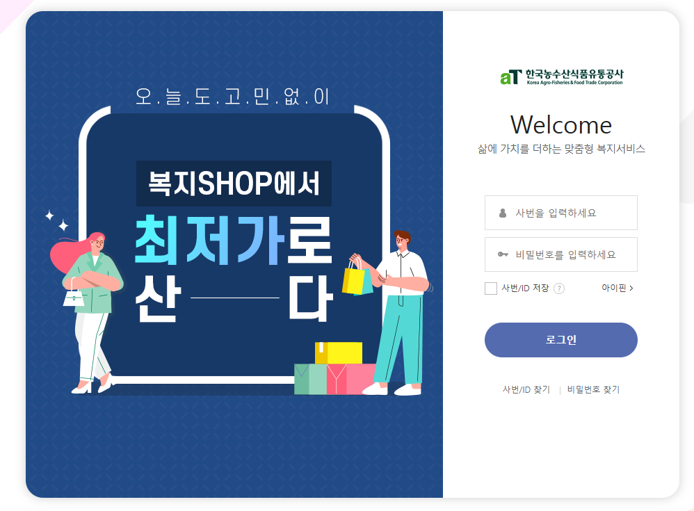 한국농수산식품유통공사 임직원은 내부 인트라넷 시스템에 접속하여 복리후생관 메뉴를 이용할 수 있습니다. 로그인 후 본인의 복지 포인트 현황, 휴양시설 예약, 건강검진 신청 등 다양한 서비스를 원스톱으로 처리할 수 있습니다.