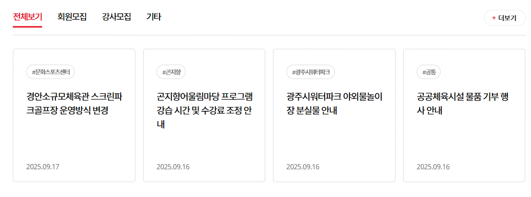 광주시 스포츠 통합센터는 광주시가 운영하는 체육 인프라 중 하나로, 실내외 체육활동을 위한 시설과 생활체육 프로그램을 한 곳에서 제공하는 복합 스포츠 공간입니다. 특히, 연령대와 체력 수준에 맞는 다양한 맞춤형 프로그램을 통해 누구나 쉽게 체육활동에 참여할 수 있도록 돕고 있습니다.