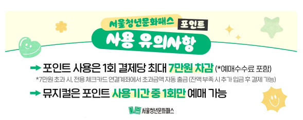 서울 청년문화패스로 발급받은 카드는 공연 및 전시 관람 시 이용할 수 있으며, 1인당 연간 최대 20만 원 한도로 사용할 수 있습니다. 1건당 최대 7만 원 이내로 사용할 수 있어 다양한 문화 행사를 경험하는 데 도움이 됩니다. 예매는 서울청년문화패스 홈페이지를 통해 온라인으로 진행하며, 지정된 공연과 전시에 한해 사용할 수 있습니다.