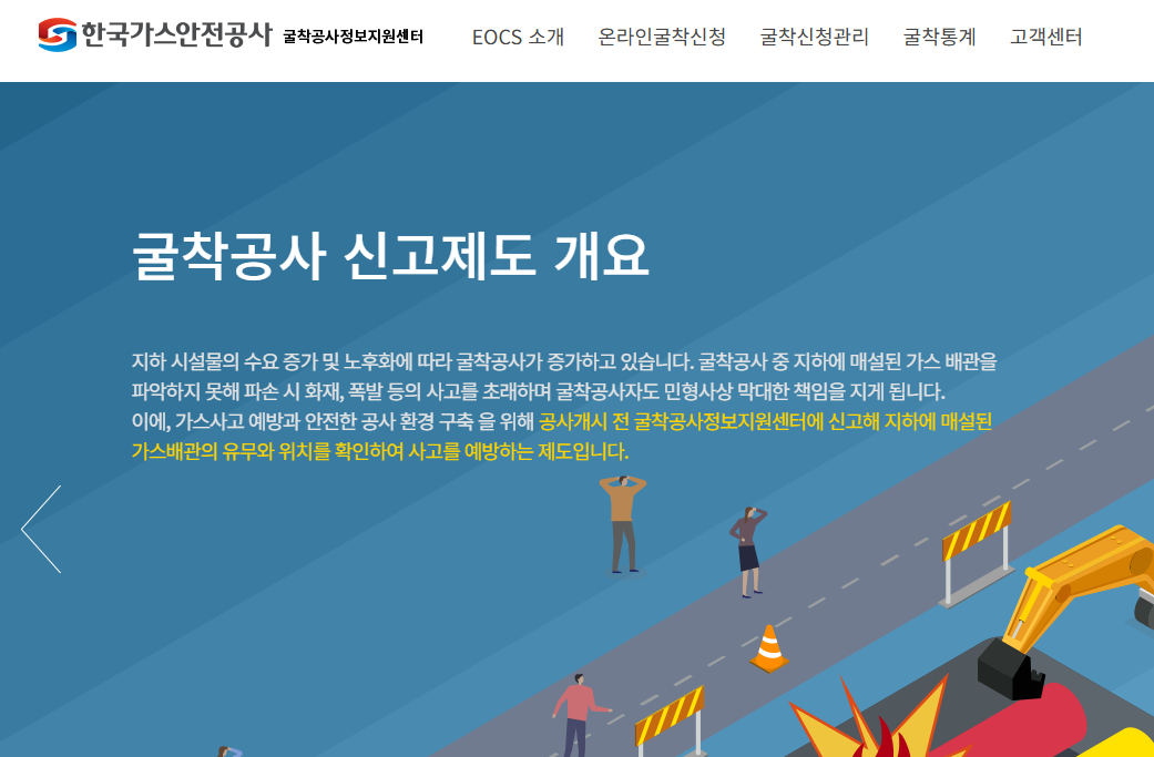 - 온라인 신고: 공식 웹사이트(www.eocs.or.kr)를 통해 굴착계획을 작성하고 제출할 수 있습니다.