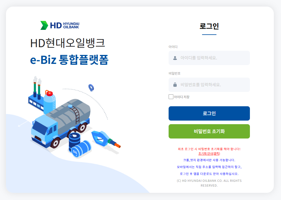 HD현대오일뱅크 e-Biz 통합플랫폼 :