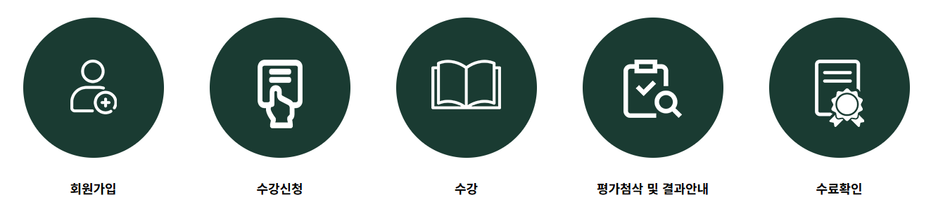 - 선택한 교육을 수강하고 평가를 완료하면 수료증을 발급받을 수 있습니다.