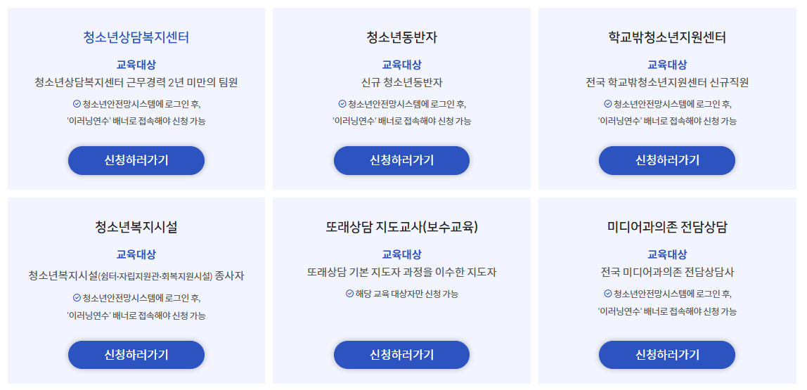 - 직무 연수 프로그램: 청소년상담복지센터 종사자를 위한 필수 직무 교육